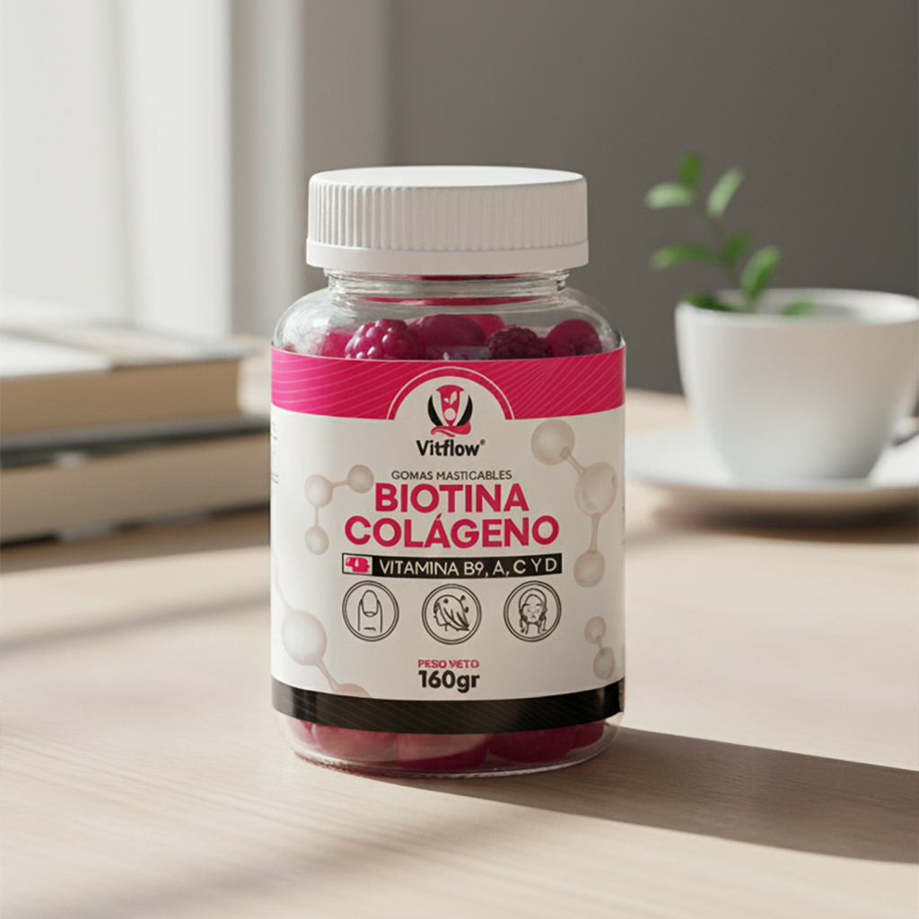 Nutrición diaria con colágeno y biotina: luz natural, fuerza visible, bienestar real.